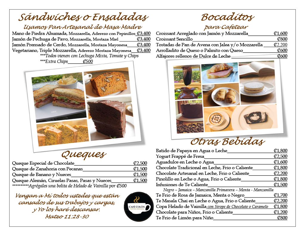Colon Coffee Menu
